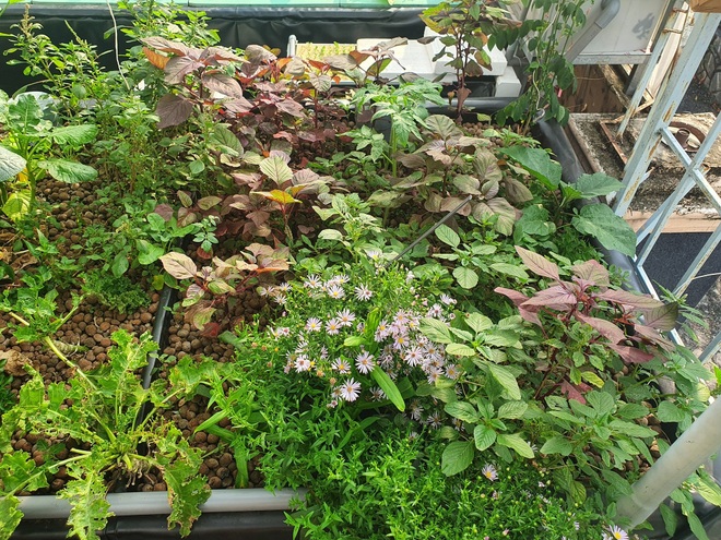 Khu vườn 28m2 canh tác theo mô hình Aquaponics trở thành “khu chợ tại gia” để gia đình thoải mái lựa chọn. Hiện khu vườn của anh đa dạng đủ loại rau củ khác nhau như cải, xà lách, rau gia vị, bầu, mướp, bí, khổ qua… Lượng cá đủ cho gia đình 4 người an tâm sử dụng mà không lo đi chợ, siêu thị trong thời điểm giãn cách xã hội, thậm chí còn dư để tặng hàng xóm.
